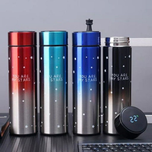 فلاسک استیل درجهدار طرح ستاره با ظرفیت ۰.۵ لیتر، یک گزینه عالی برای نگهداری چای، قهوه، دمنوش و انواع نوشیدنیهای سرد و گرم است. این فلاسک دارای نمایشگر دیجیتالی دمای مایع روی درب بوده که به شما امکان میدهد بدون باز کردن درب، دمای نوشیدنی را مشاهده کنید. طراحی زیبا با طرح ستاره، آن را به یک انتخاب خاص و کاربردی برای استفاده روزمره، سفر، محل کار و دانشگاه تبدیل کرده است.