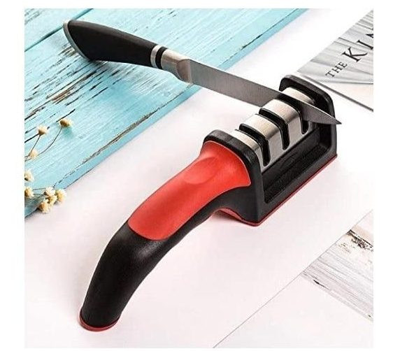طراحی منحصر به فرد در سیستم تیزکردن، راحتی و امنیت در تیز کردن تیغه ها، سیستم EVA ضد لغزندگی جهت ایمنی، دستگیره از جنس استیل ضدزنگ با طراحی کلاسیک، دارای 3 تیغه برای انواع چاقو قیچی ساطور و تیغ.